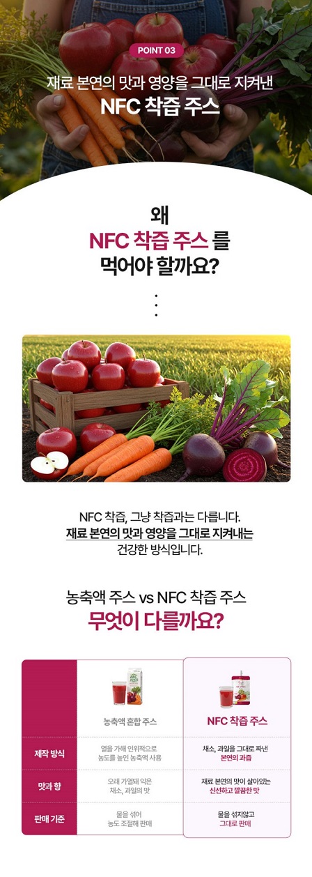 선물용으로도 손색없는 센스있는 구성으로 준비했습니다 🎁 🌿 100% 유기농 원재료 + NFC 착즙 👉 물 한 방울 없이 그대로 짜낸 진한 원액