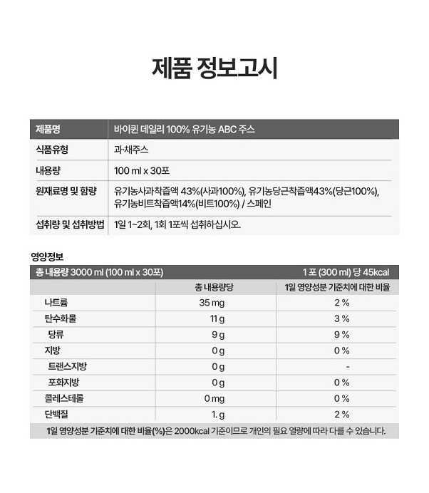 데일리 100% 유기농 ABC 주스(30포)-[4월8일/수요일수령]