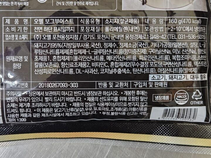 국내산 돼지고기95%함량(보그 부어스트)160g-[4월9일/목요일수령]
